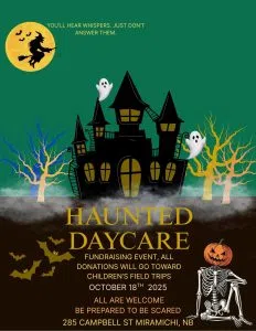 Karlie’s PreSchool at 285 Campbell Street, is hosting their Haunted Daycare fundraiser on Oct. 18th from 6 to 8 pm. Funds raised will be used for field trips and activities. All are welcome. Low level scares for young ones and the faint of heart are available by request at the door.